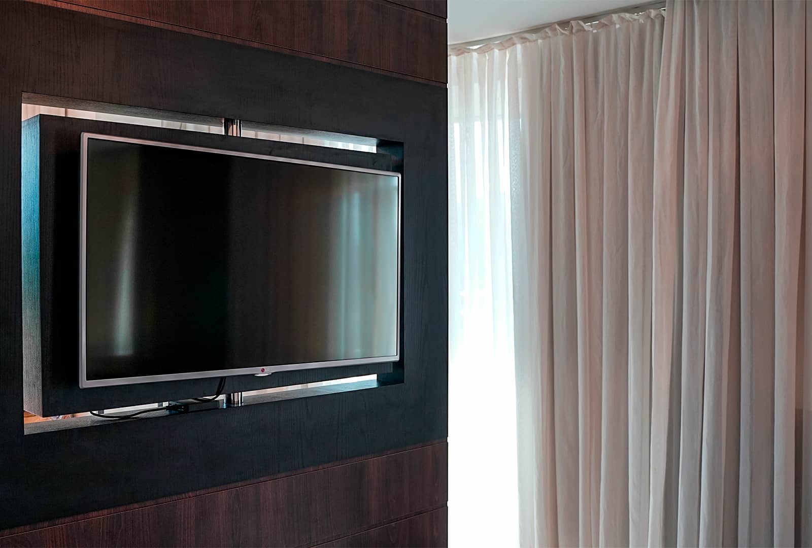 Elegante acomodação com 34m2, espaçosa. A cama king-size plus, é altamente confortável com enxovais de primeira linha, lençóis, sob lençol, colcha e travesseiros para seu conforto total. Nos banheiros, banheira com sais de banho e cromoterapia, chuveiro de alta pressão, roupão e amenities para sua satisfação. Contamos ainda com frigobar, mesa para trabalho e cofre.